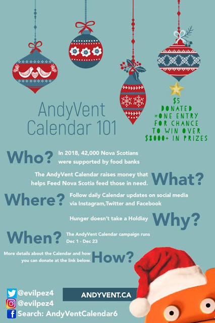 The fundraiser is launched in November, though officially kicks off December 1st. That is when prizes begin to be revealed daily on the AndyVent calendar (which can be seen on the main website, Facebook, and Instagram).